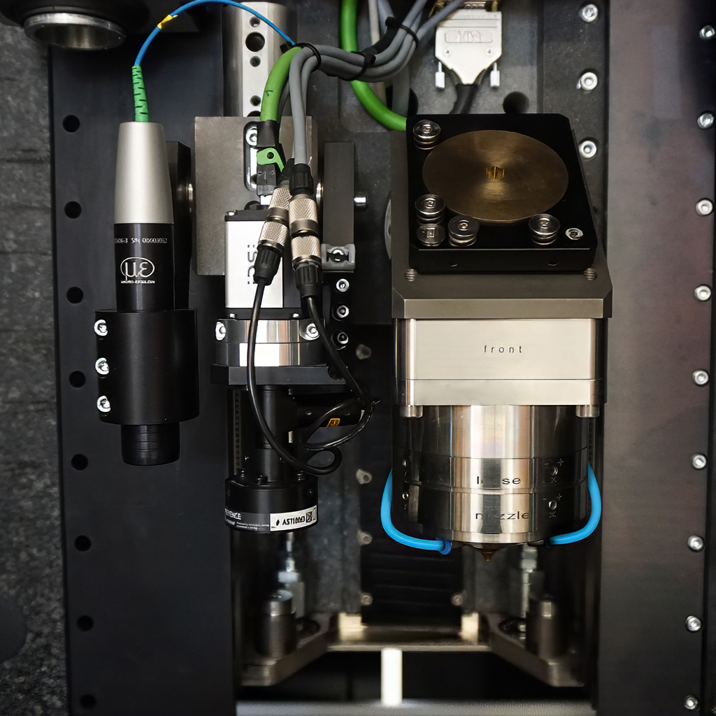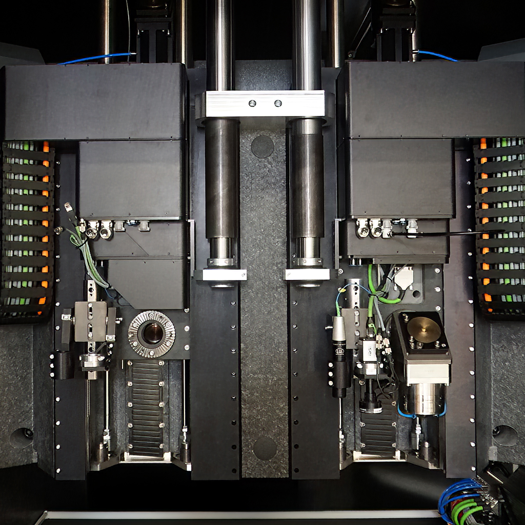 在可选模块配置中,固定式或扫描式光学系统均能兼容市面主流超短脉冲激光源。专利轴系运动机构与特制双旋转摆台(X/Y向可移动)相结合,赋予设备极致的加工灵活性。驱动导向机构与花岗岩滑台采用的主动水冷技术,确保系统保持最佳温度稳定性。创新科技与美学设计相得益彰,密封式黑色玻璃防护罩成为该设备的视觉亮点。