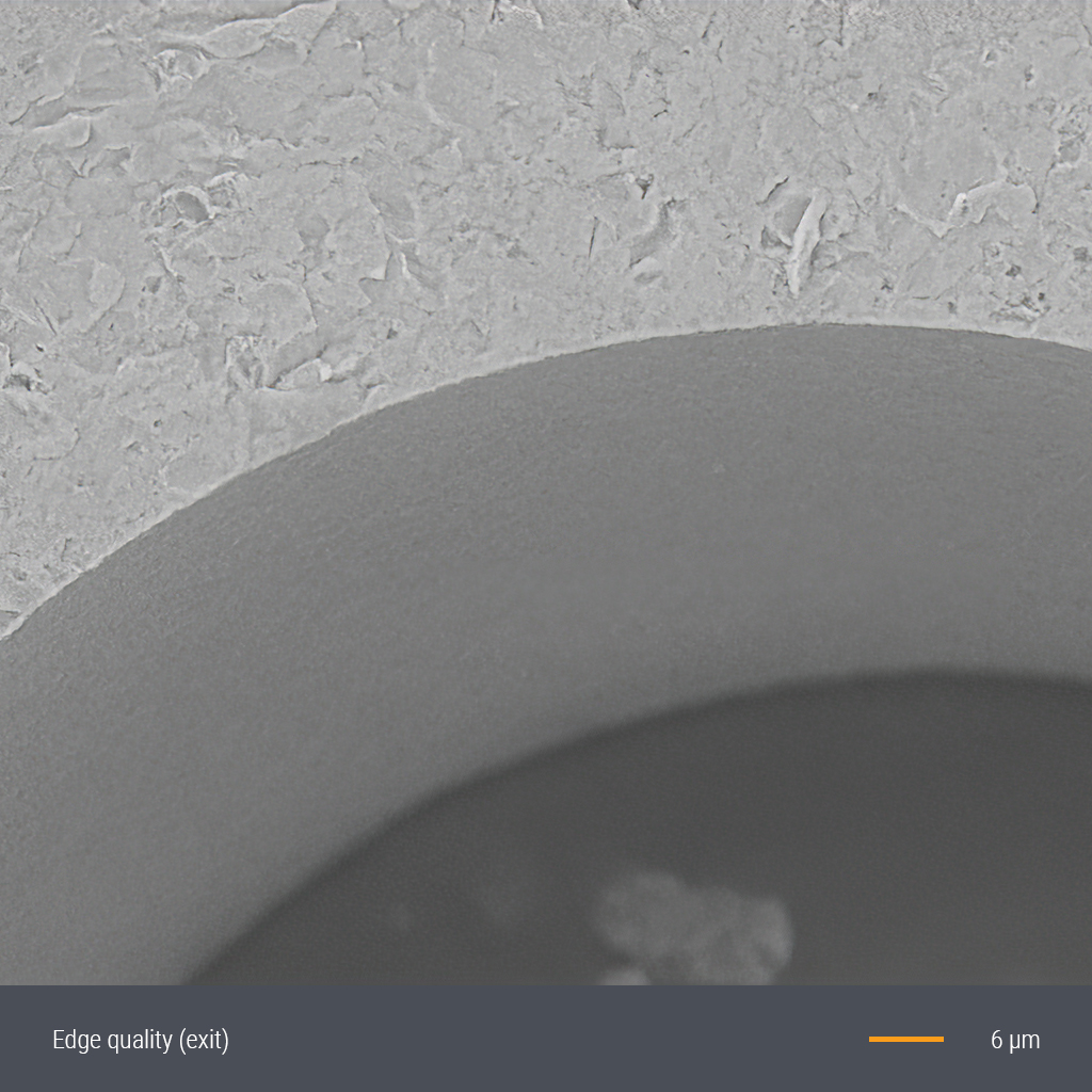 激光为微孔加工提供了高度灵活的工艺手段。可实现从圆形、椭圆、多边形到自由形状的多样化孔型结构,并能精确控制孔道锥度变化。根据应用需求,既可生成垂直孔壁的圆柱形孔道,也可实现锥形扩孔或缩孔工艺。通过激光束旋转运动控制孔径尺寸,可直接通过软件参数连续调节目标直径。基于超短脉冲激光的冷加工特性,钻孔过程无熔融残留,无需后续处理。