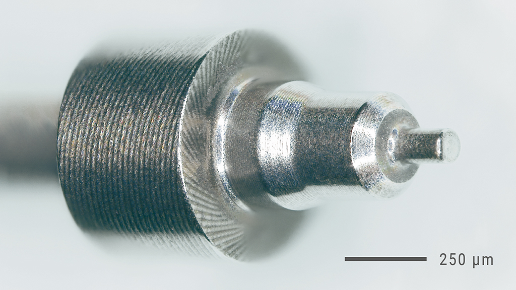 So that watches tick on time - In order to prevent undesirable friction processes or rapid wear, the microscopic components of high quality watches must have optimal surface properties. This also applies to the pivots of the various shafts in the movement. If their quality suffers, then this would quickly lead to the clock noticeably gaining or losing time. These components are traditionally manufactured using a mechanical turning process. However, chip formation, heat effects and tool wear lead to large variances in quality. In addition, conventional lathes aren't always able to reliably reproduce the often challenging geometries, for example at the transitions. To avoid rejects, a renowned high end watch manufacturer from Switzerland is now having the pivots manufactured using a laser turning process. This process was developed by GFH GmbH, headquartered in Deggendorf. The system uses an ultra short pulse laser with special trepanning optics, which is able to produce even the smallest radii or undercuts without wear and without chip formation. Blanks made from a wide variety of steel grades can be machined, as can ceramic or diamond materials which are difficult to machine with conventional means.